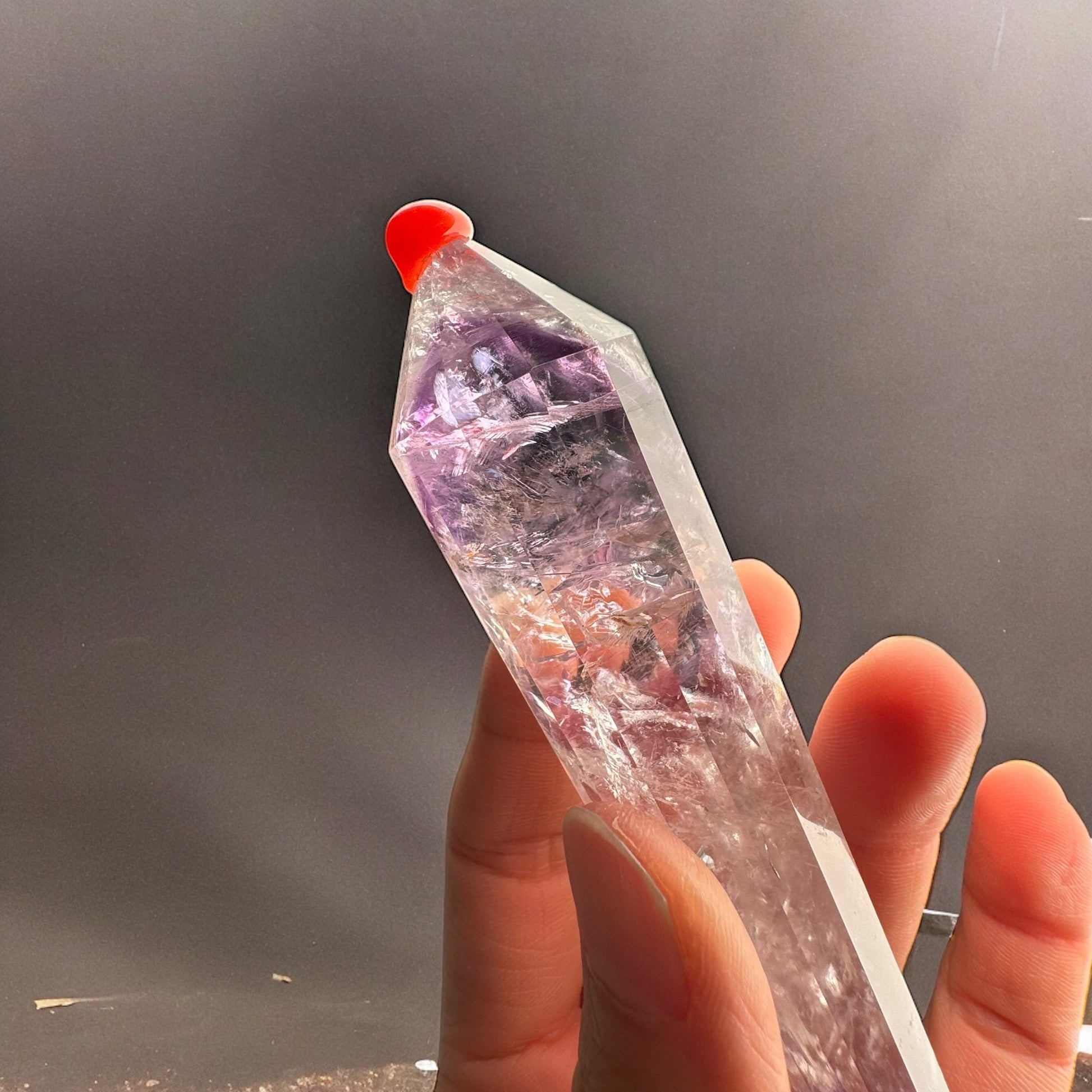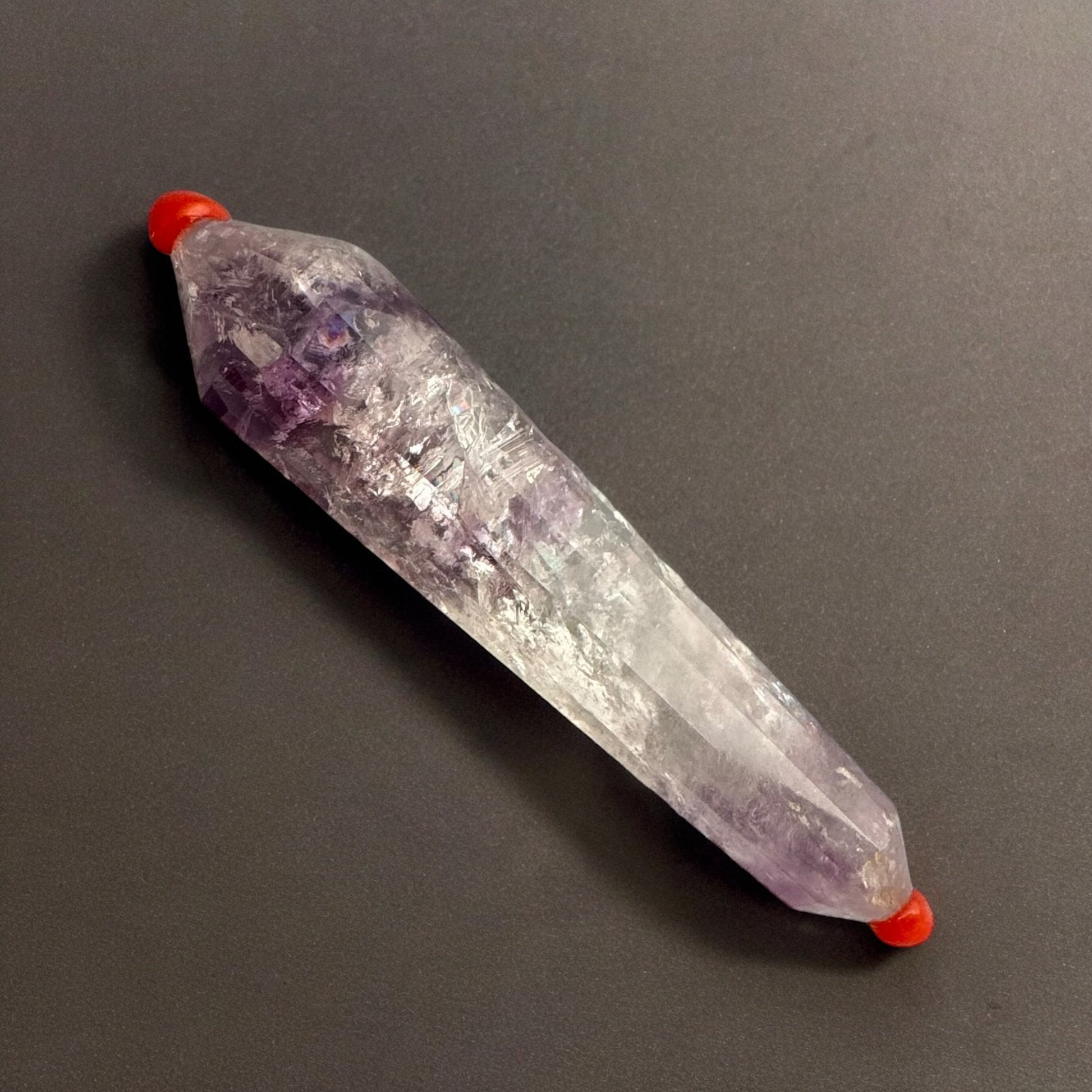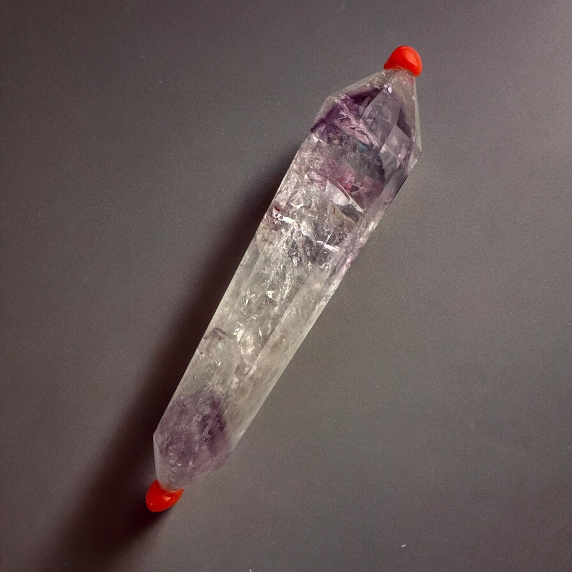 Vogel Quartz, what I referred to as the 'Make a Wish Wand,' is an amplifier of energy and intention during meditative practices. It is thought to elevate consciousness to a heightened state of clarity.