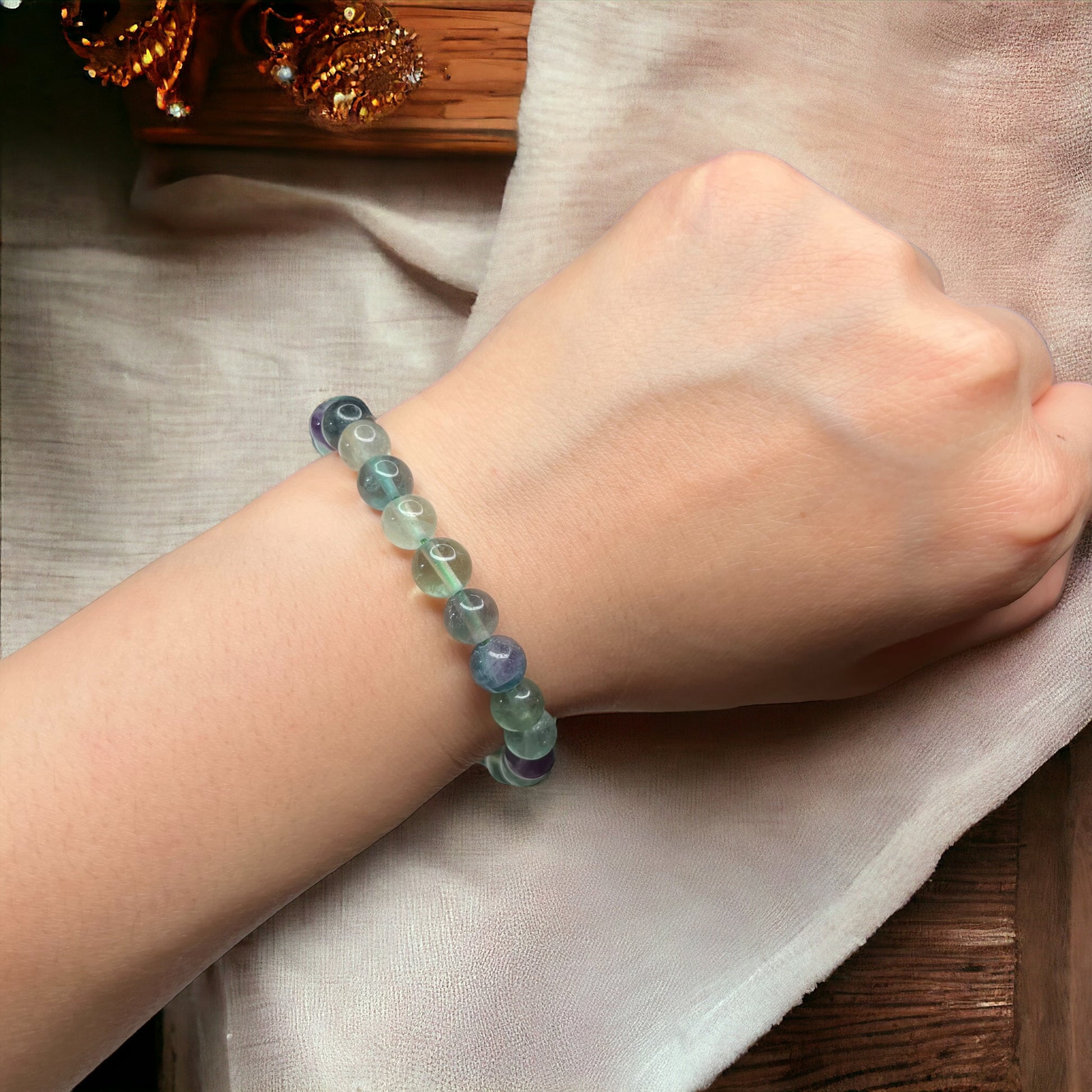 Wearing a bracelet combining Green and Purple Fluorite can potentially offer a blend of these properties, providing both grounding and spiritual elevation.