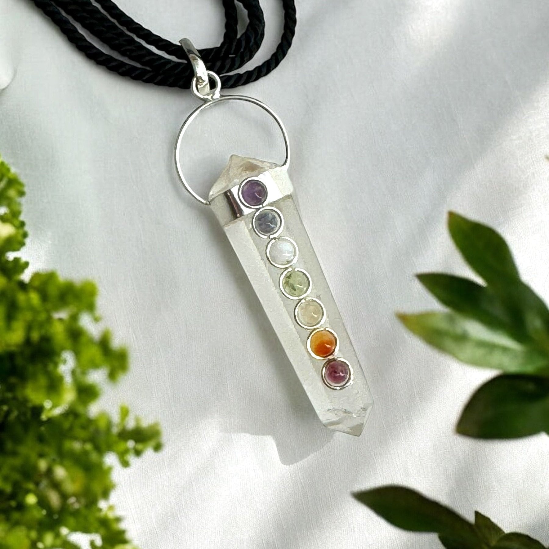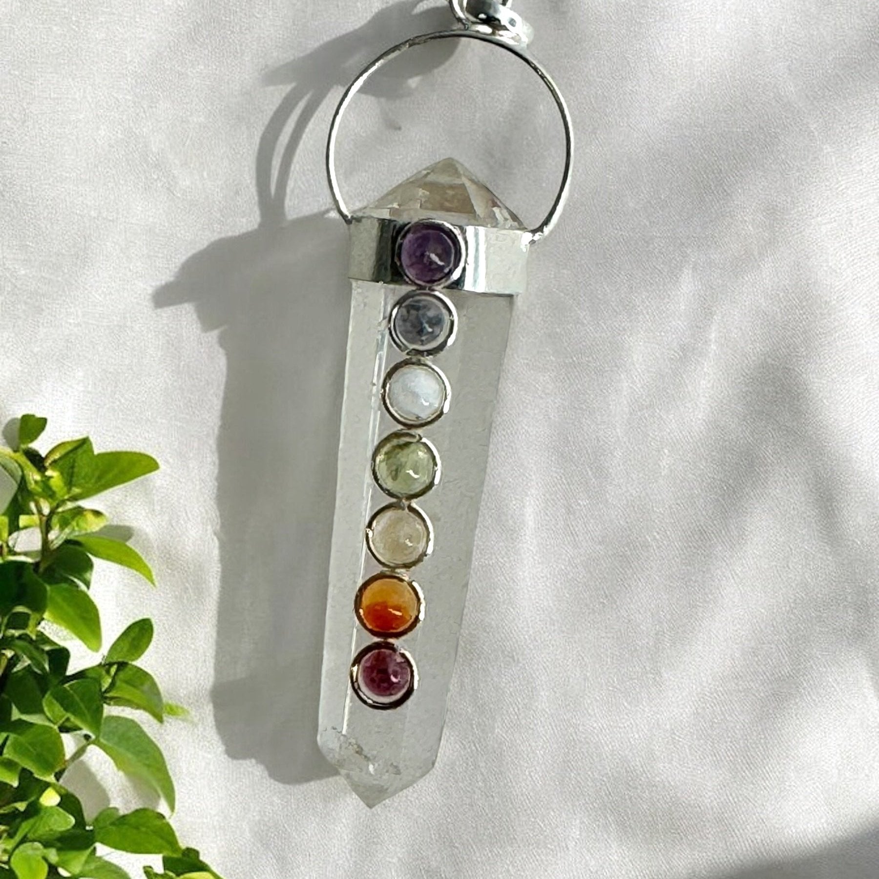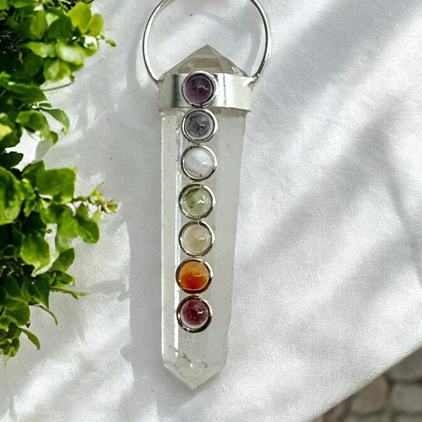 7 Chakra Gem on Clear Quartz Crystal Pendant