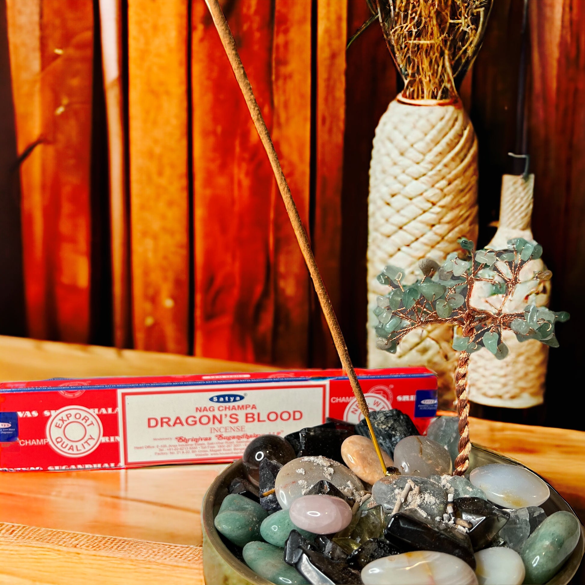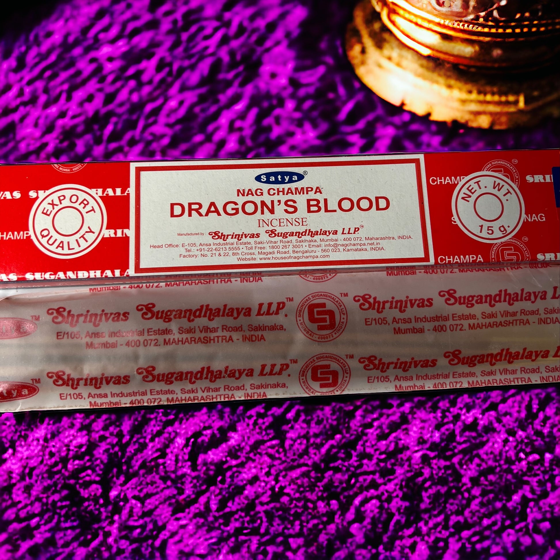 Dragon's Blood incense, crafted from the resin of diverse plants, exudes a robust and earthy scent when burned. Revered for its protective properties, this incense is believed to cleanse spaces from negativity, infusing an energetic shield. It's frequently used in spiritual practices to evoke courage, vitality, and a heightened spiritual connection.