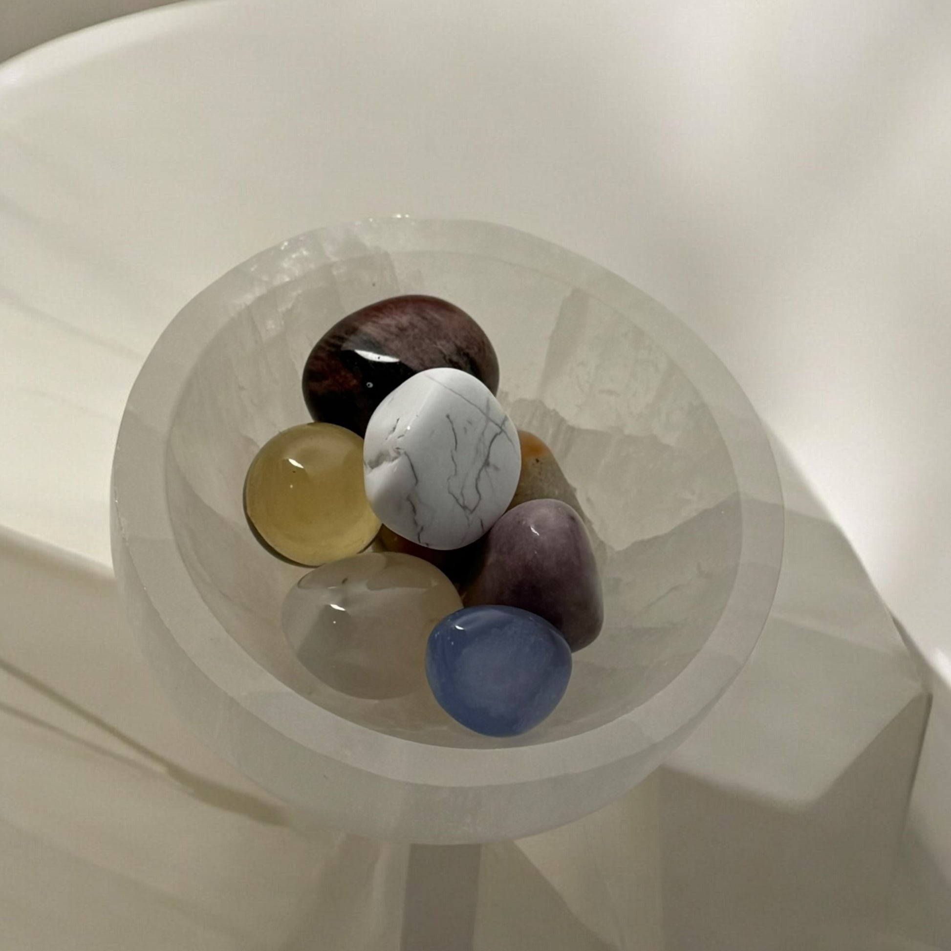 - Benefits: Facilitates deep relaxation and brings a sense of peace. Howlite is known for its calming properties, helping to quiet the mind and prepare the body for a deep, restorative sleep.