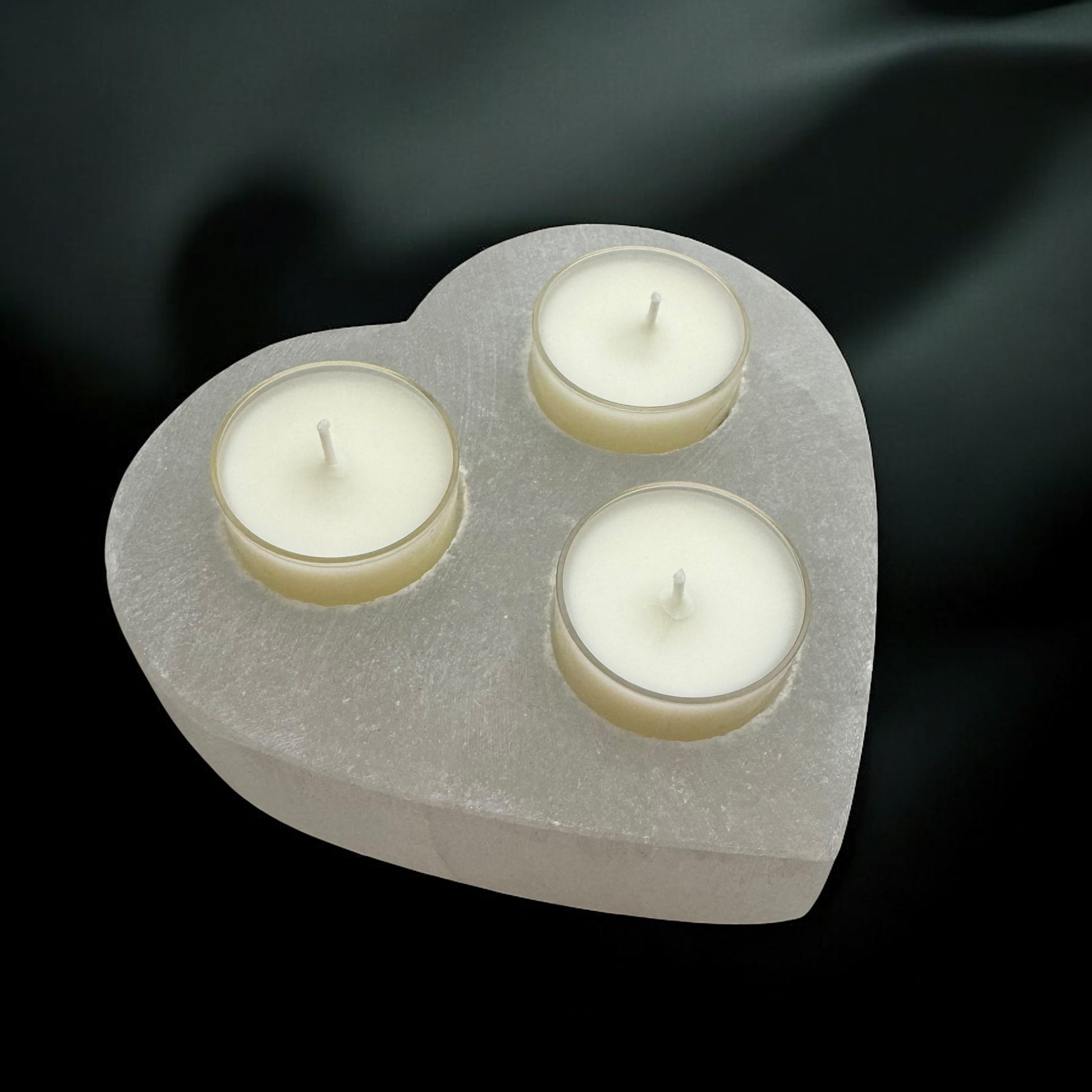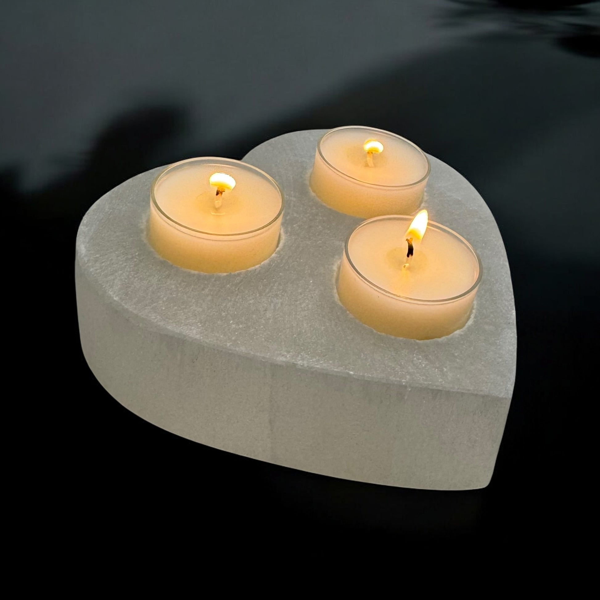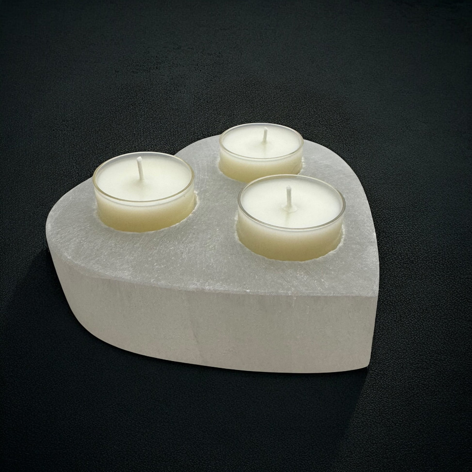 Heart Selenite Crystal 3 tea-light Candle Holder