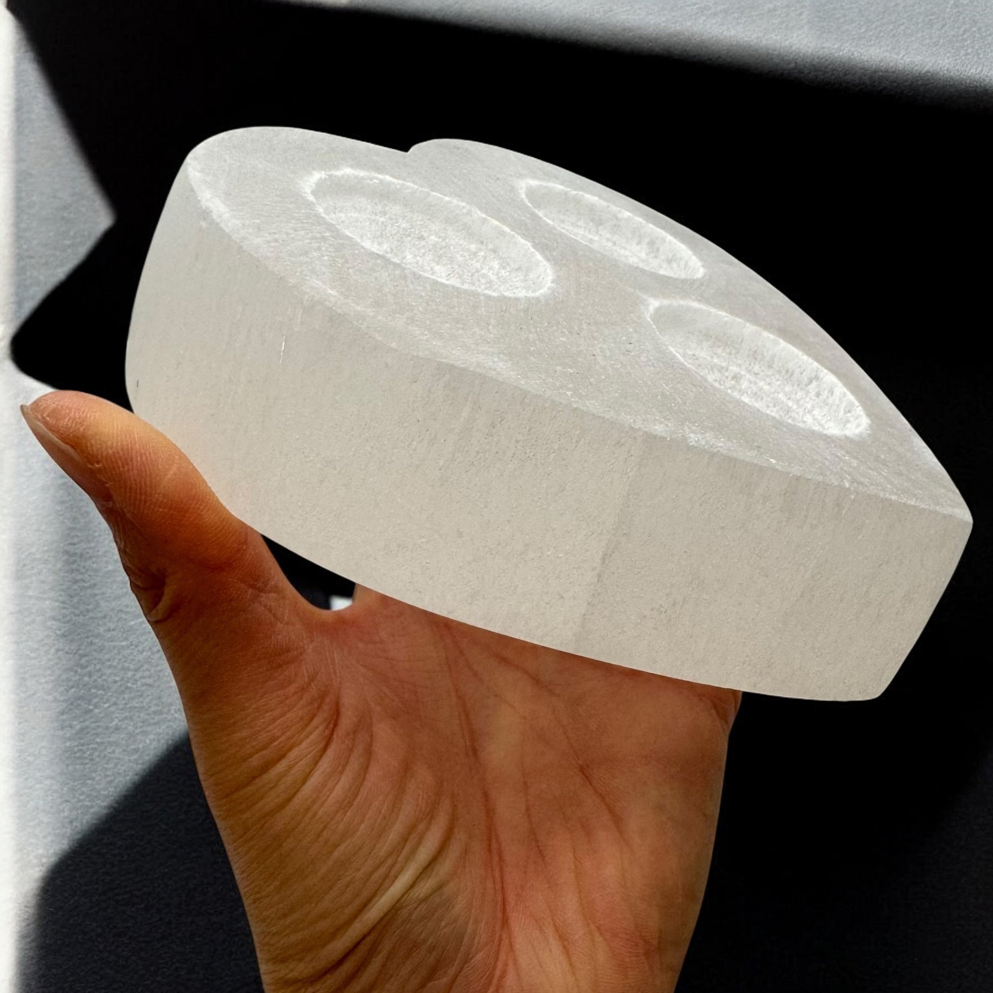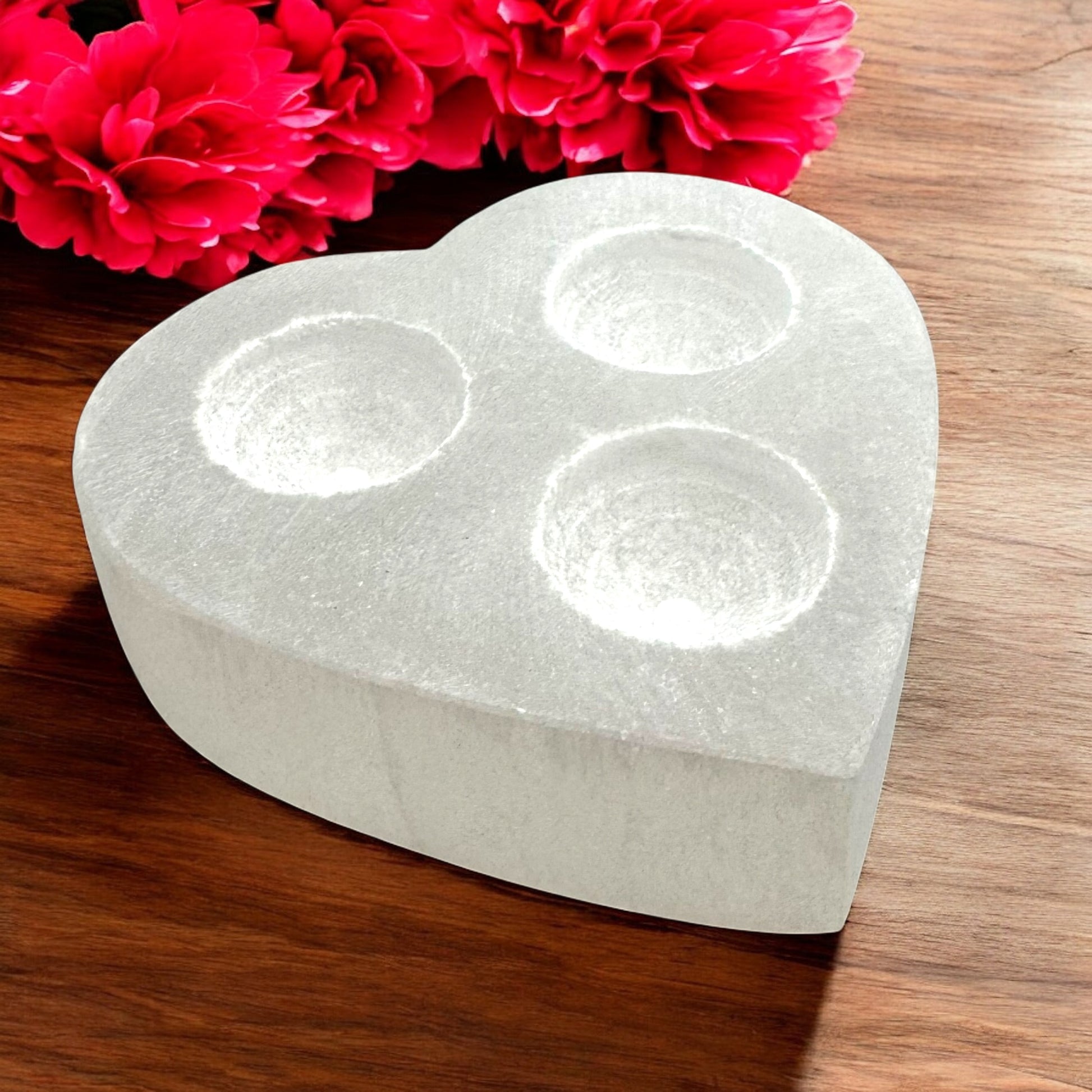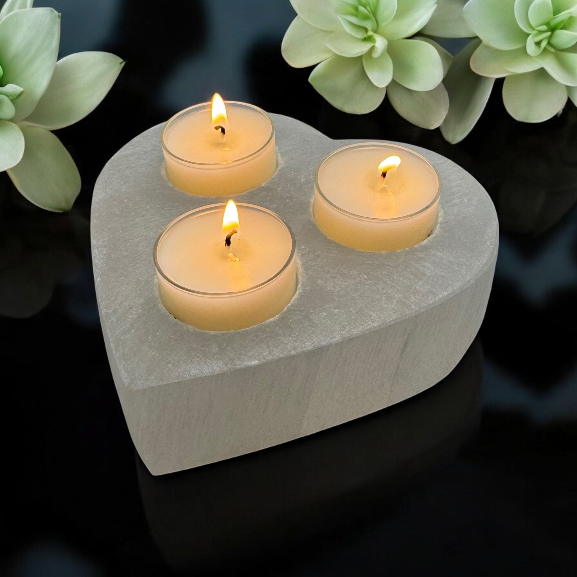 Heart Selenite Crystal 3 tea-light Candle Holder