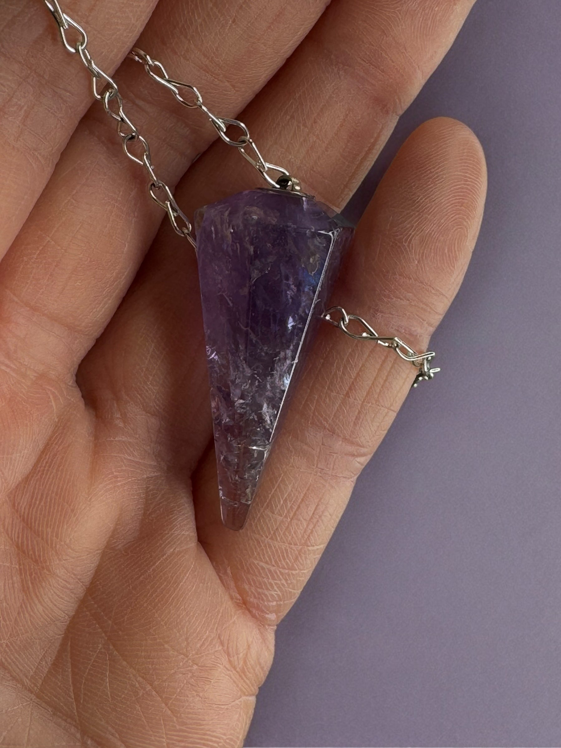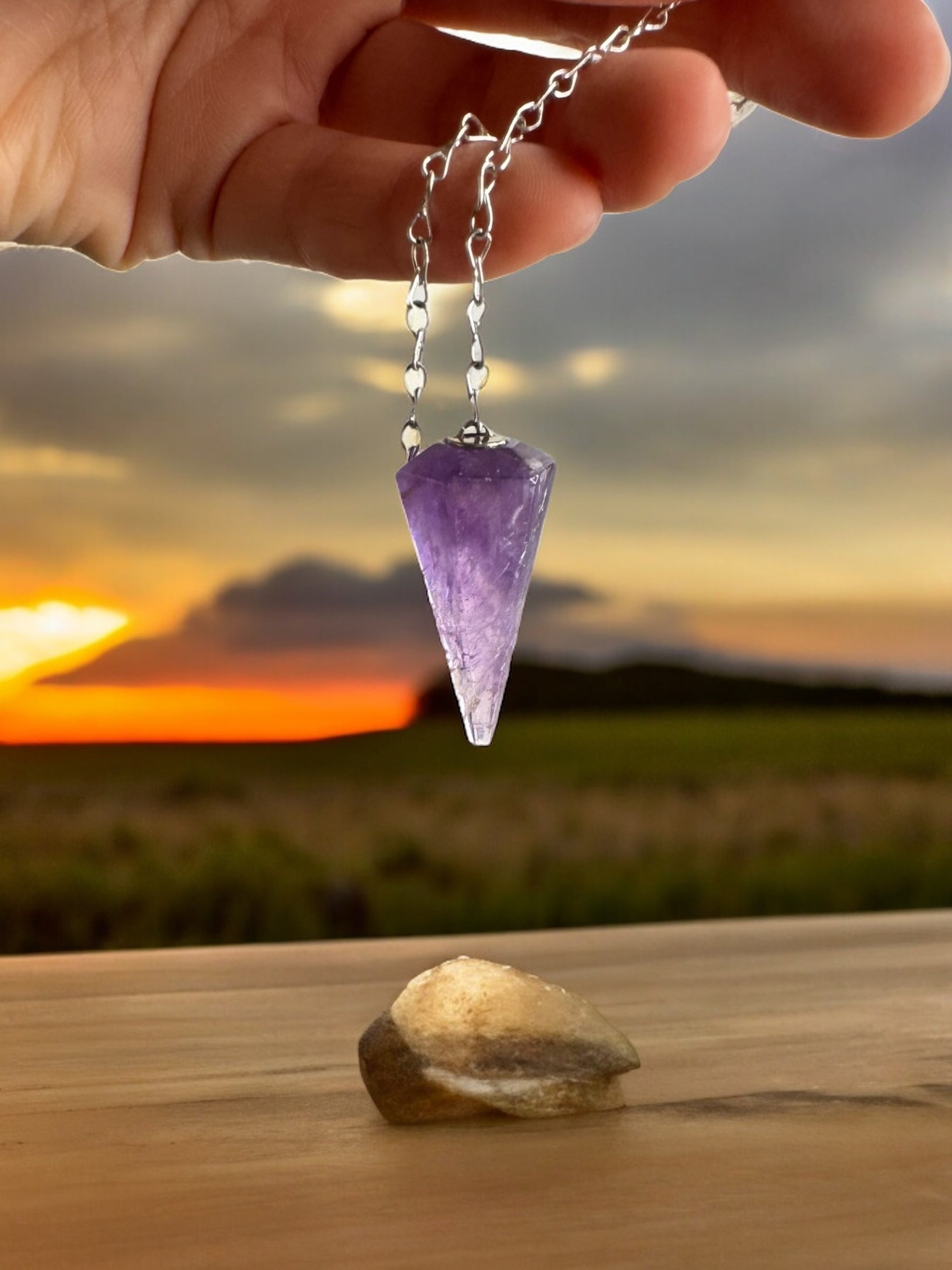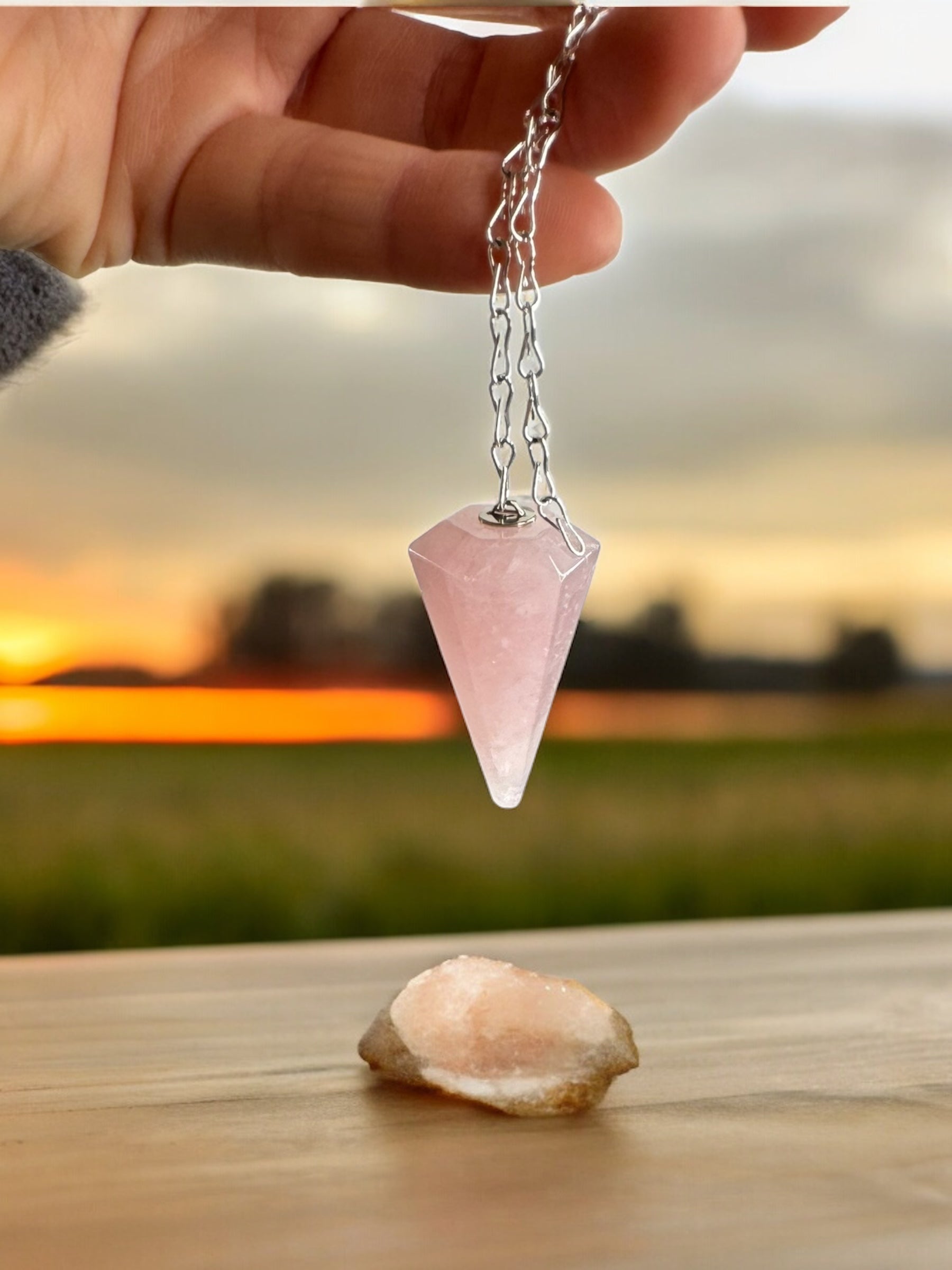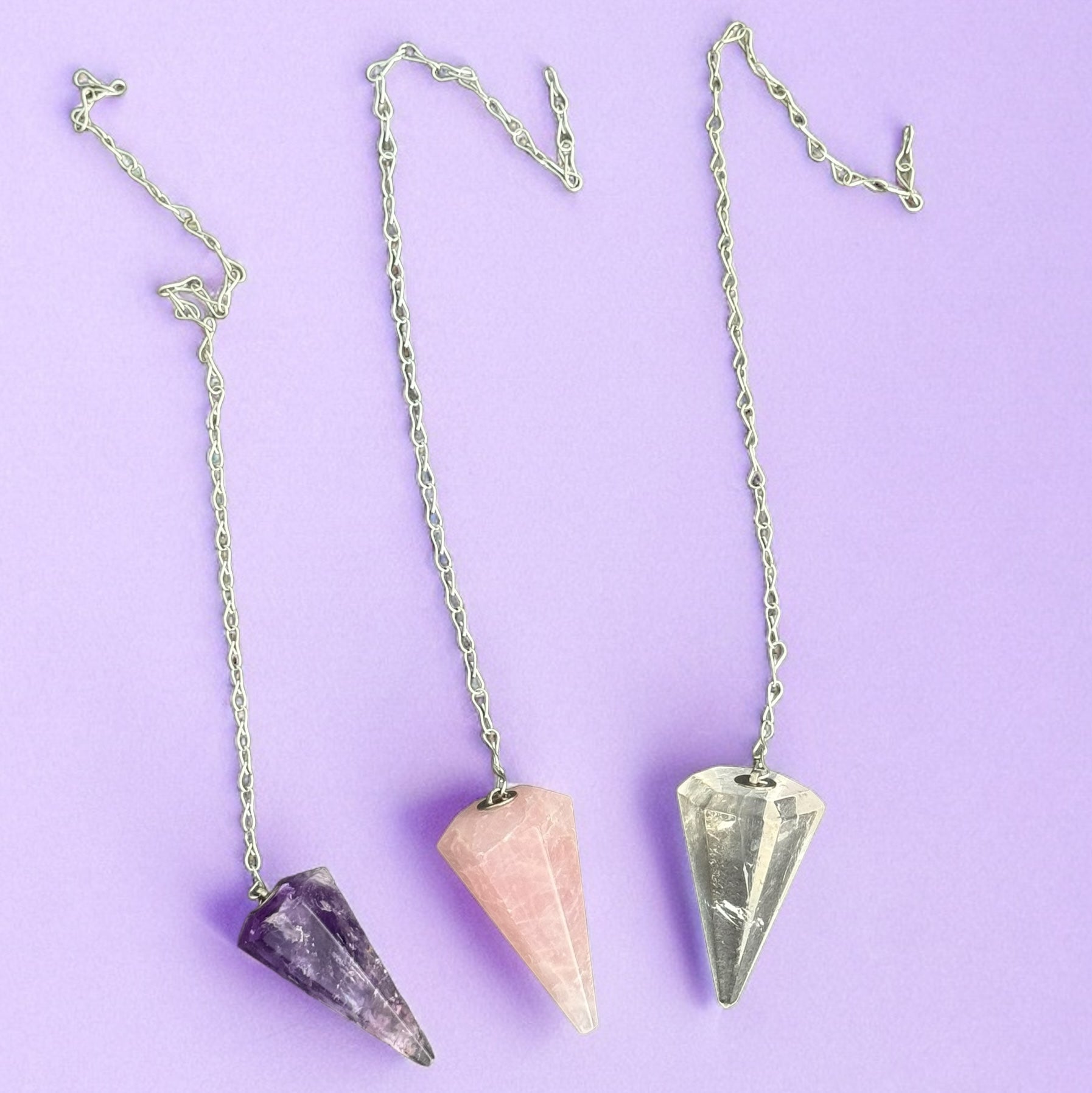 Pendulum in Amethyst, Rose Quartz, or Smoky Quartz Crystals