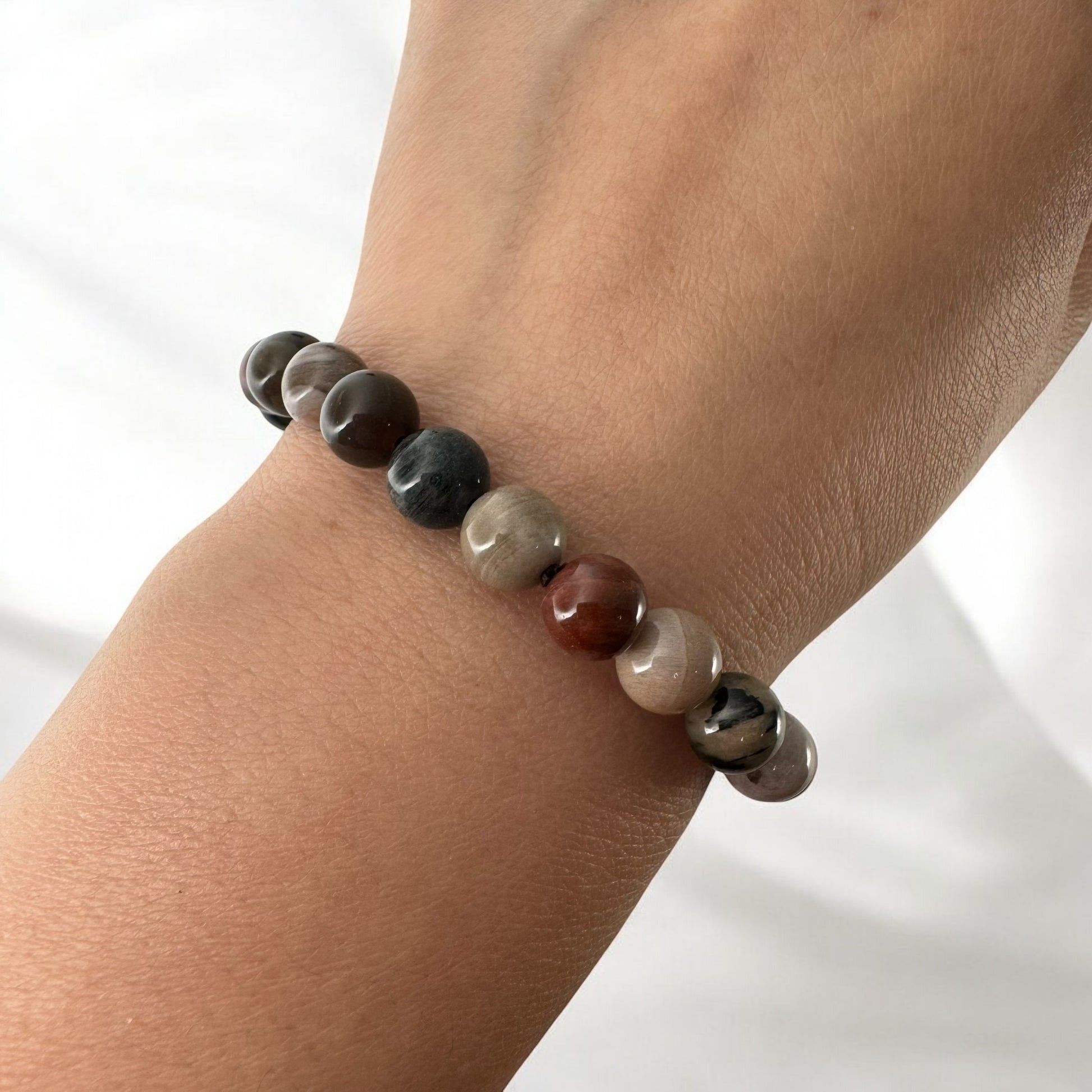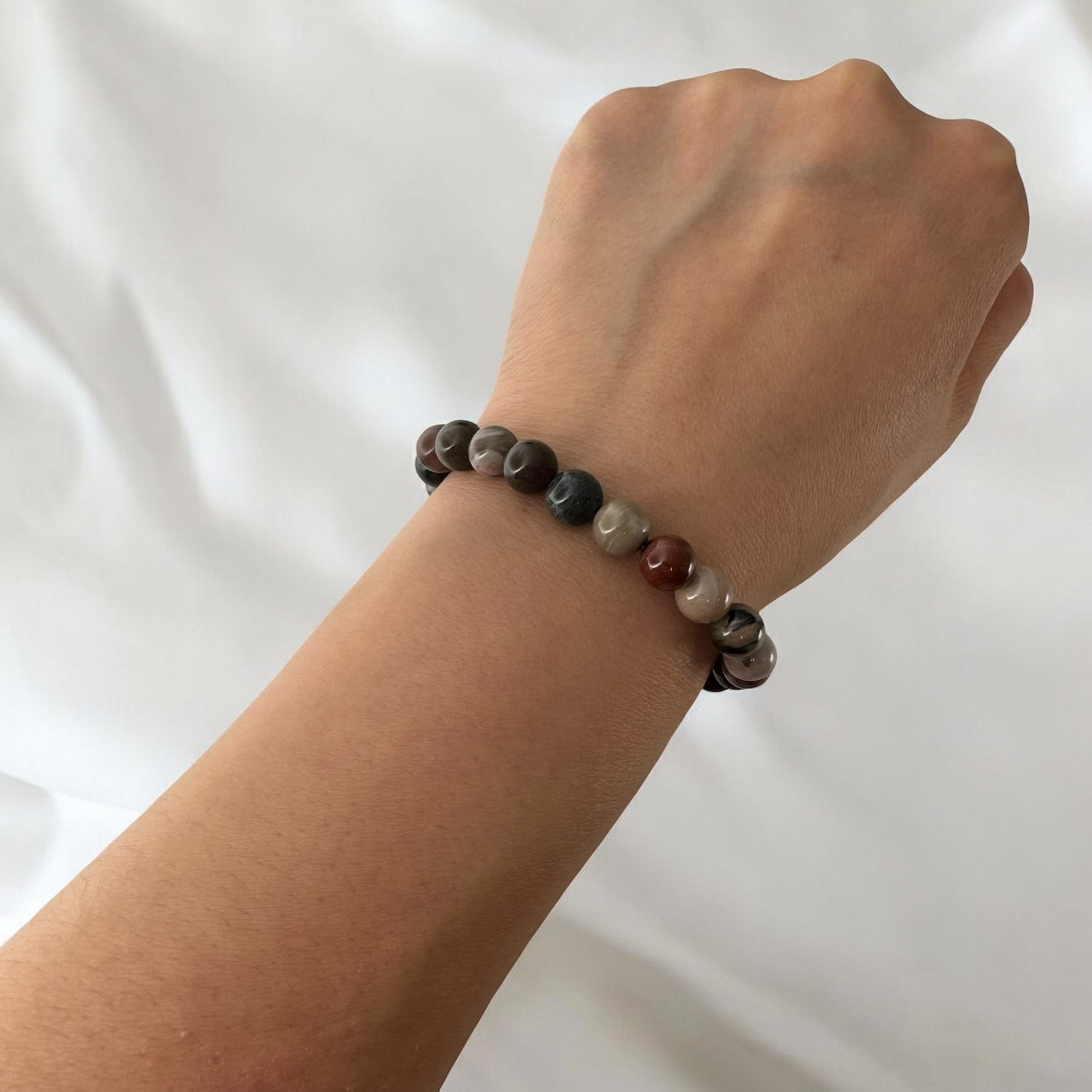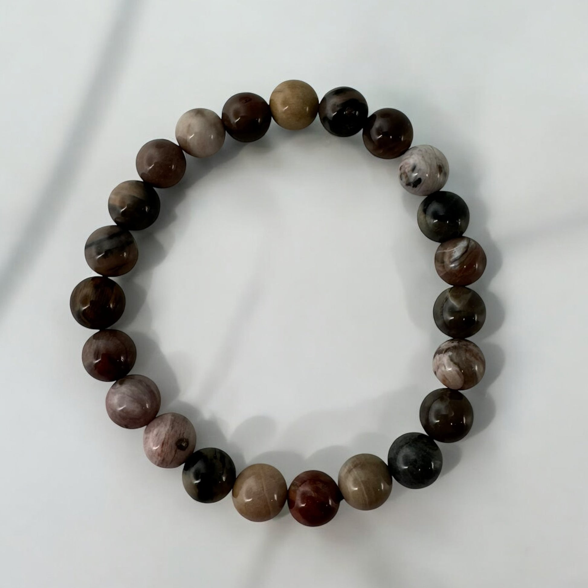 Petrified Wood Crystal Beaded Bracelet (8mm)