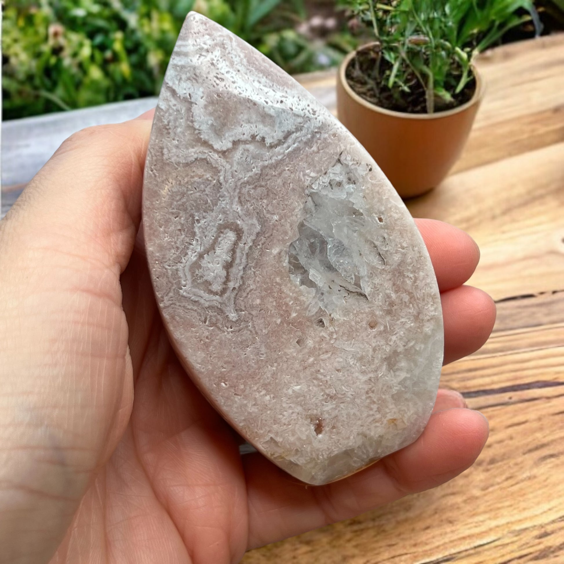 Stress Relief: Pink Amethyst's soothing energy helps to alleviate stress, tension, and anxiety. It promotes relaxation, inner peace, and a sense of overall well-being, allowing individuals to unwind and recharge.