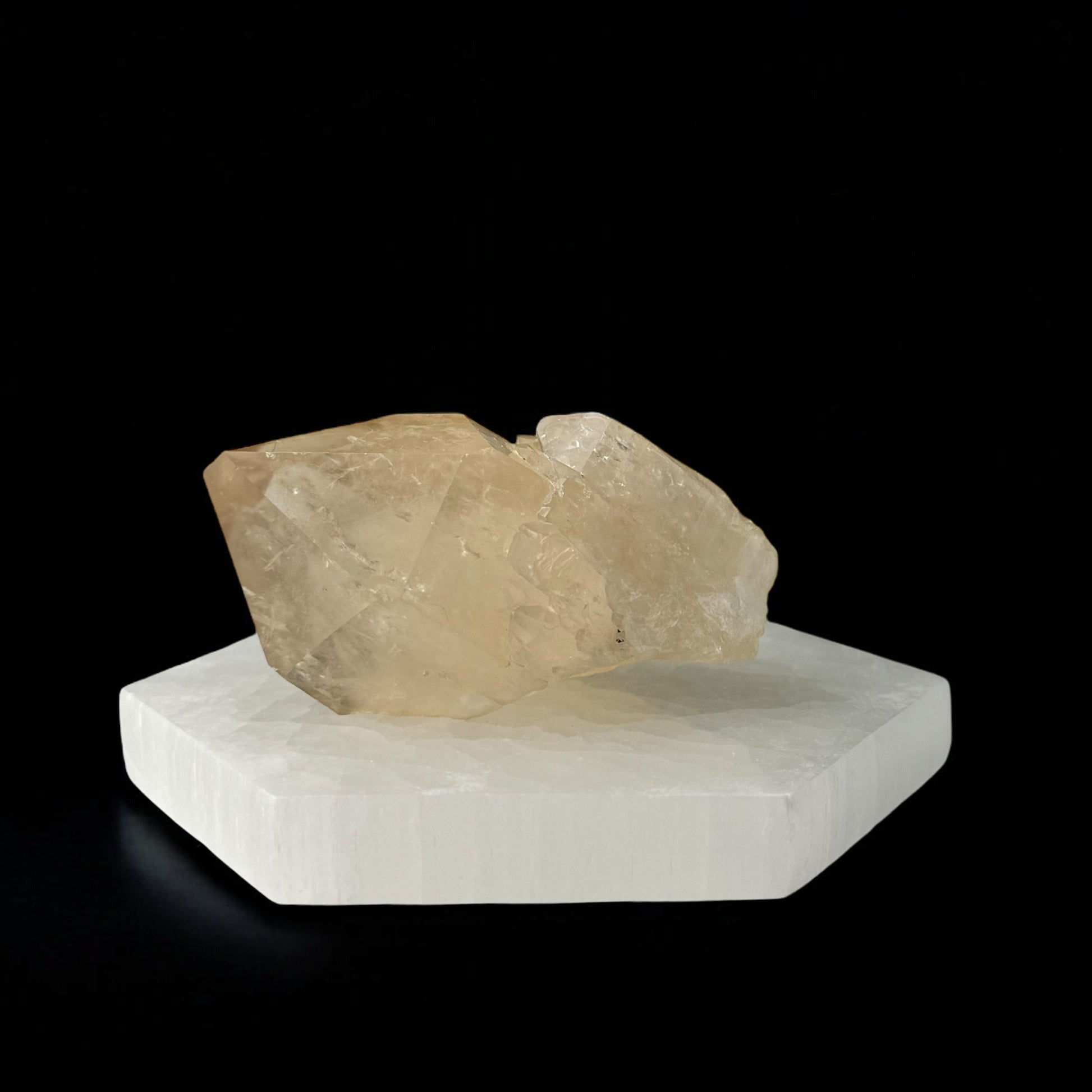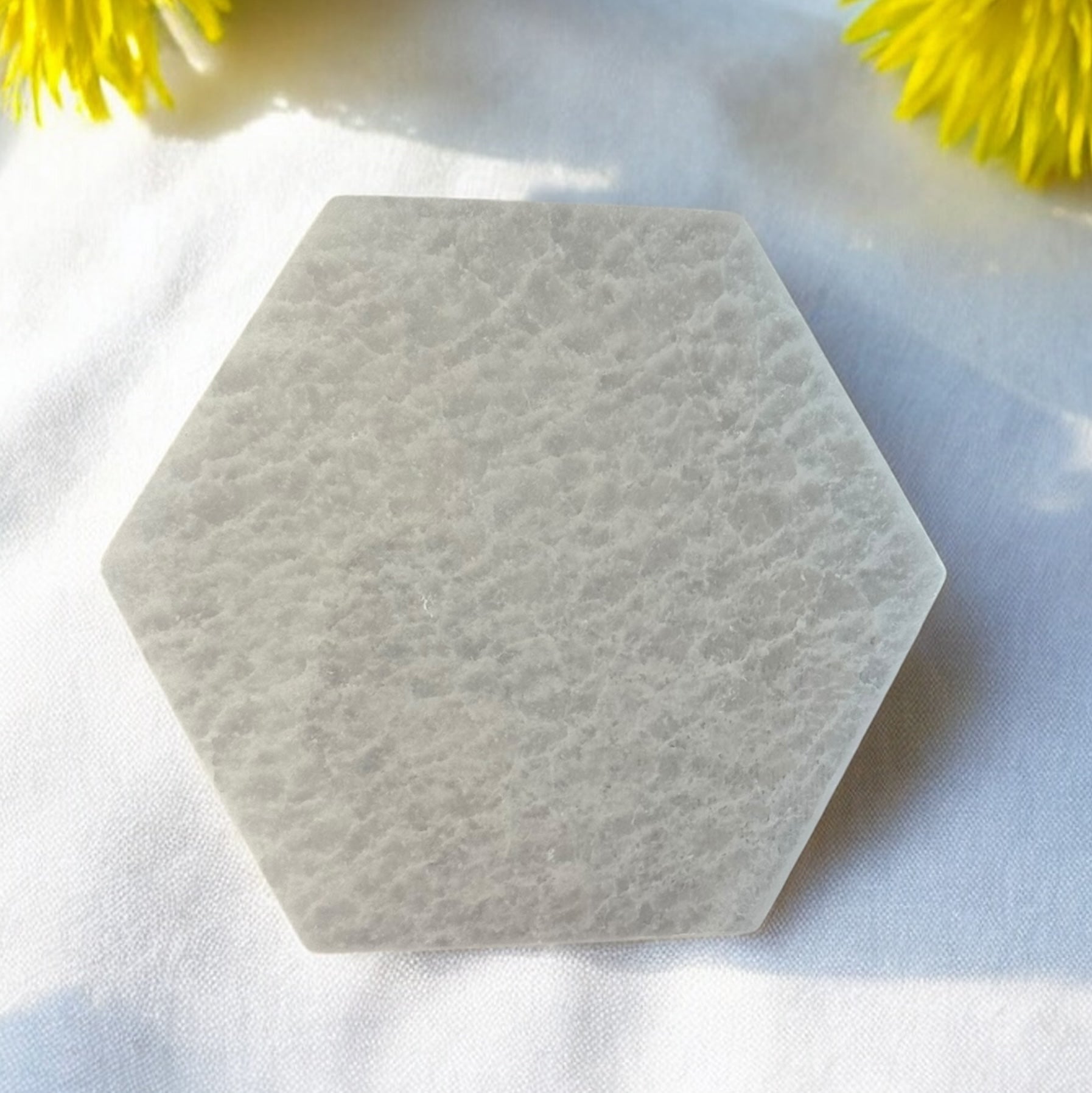 Selenite: approximately 10 cm in width and length. Weights approximately 190 g