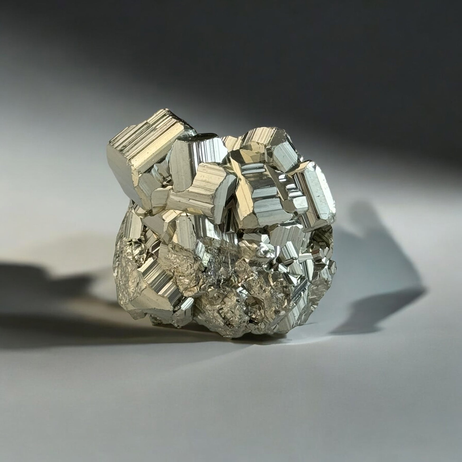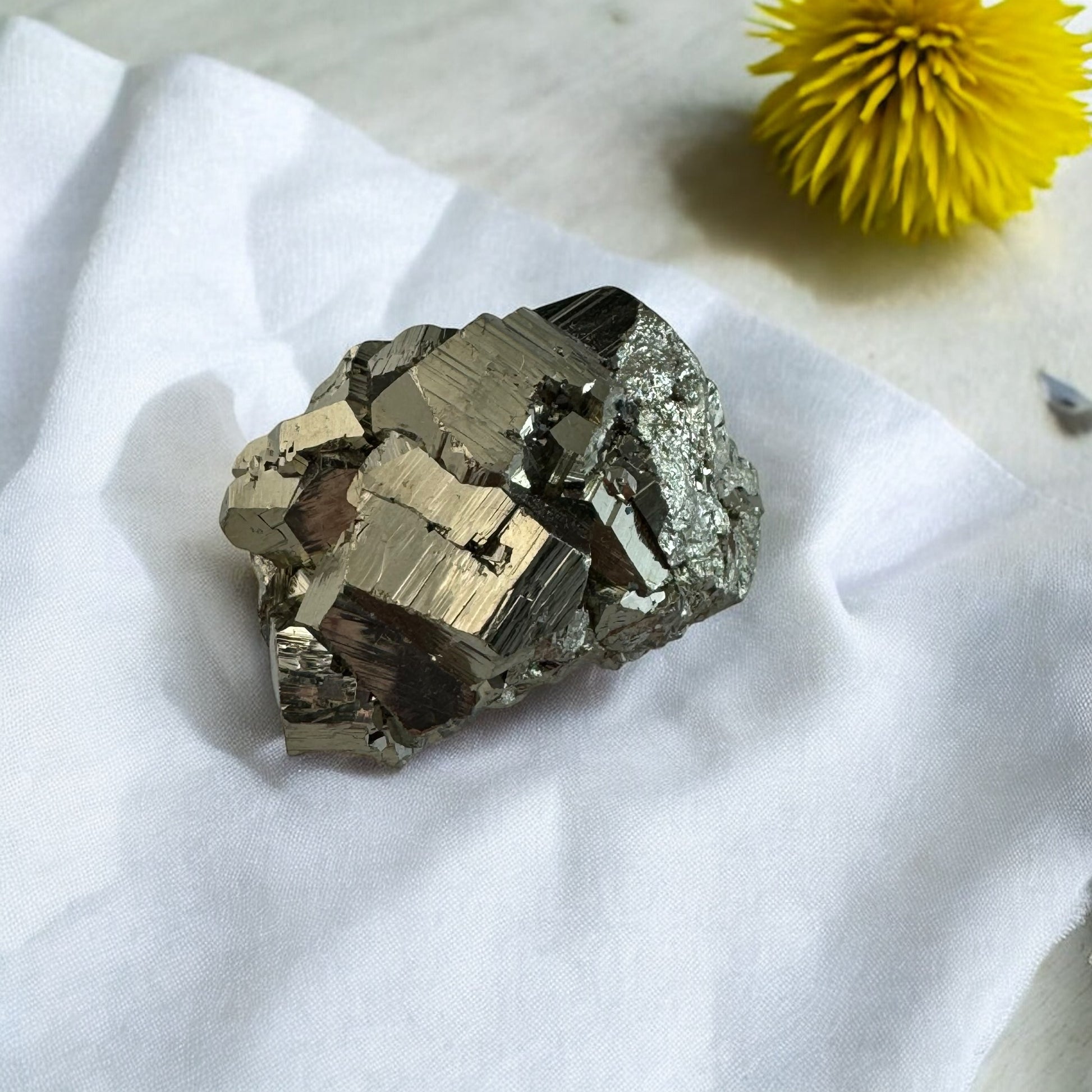Pyrite Cluster: approximately 4 cm in length and 2.5 cm in width. Weights approximately 35 g