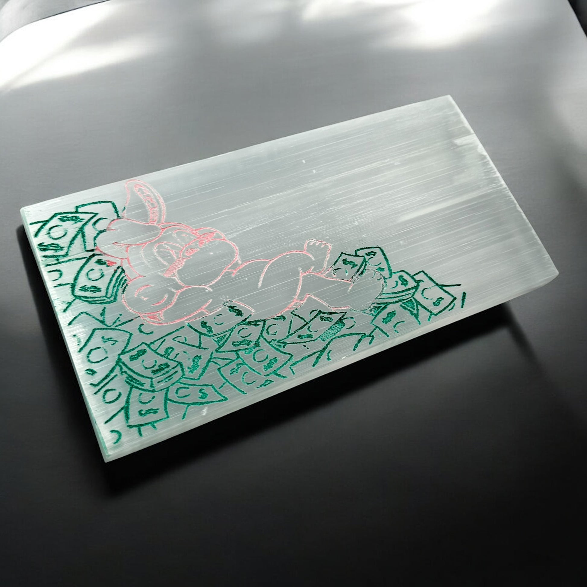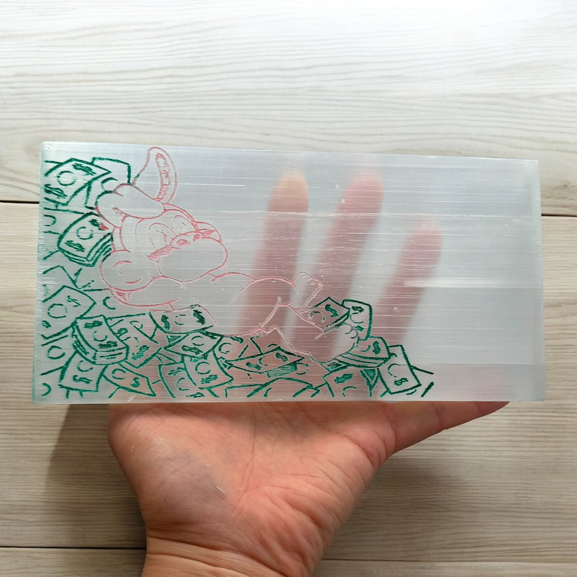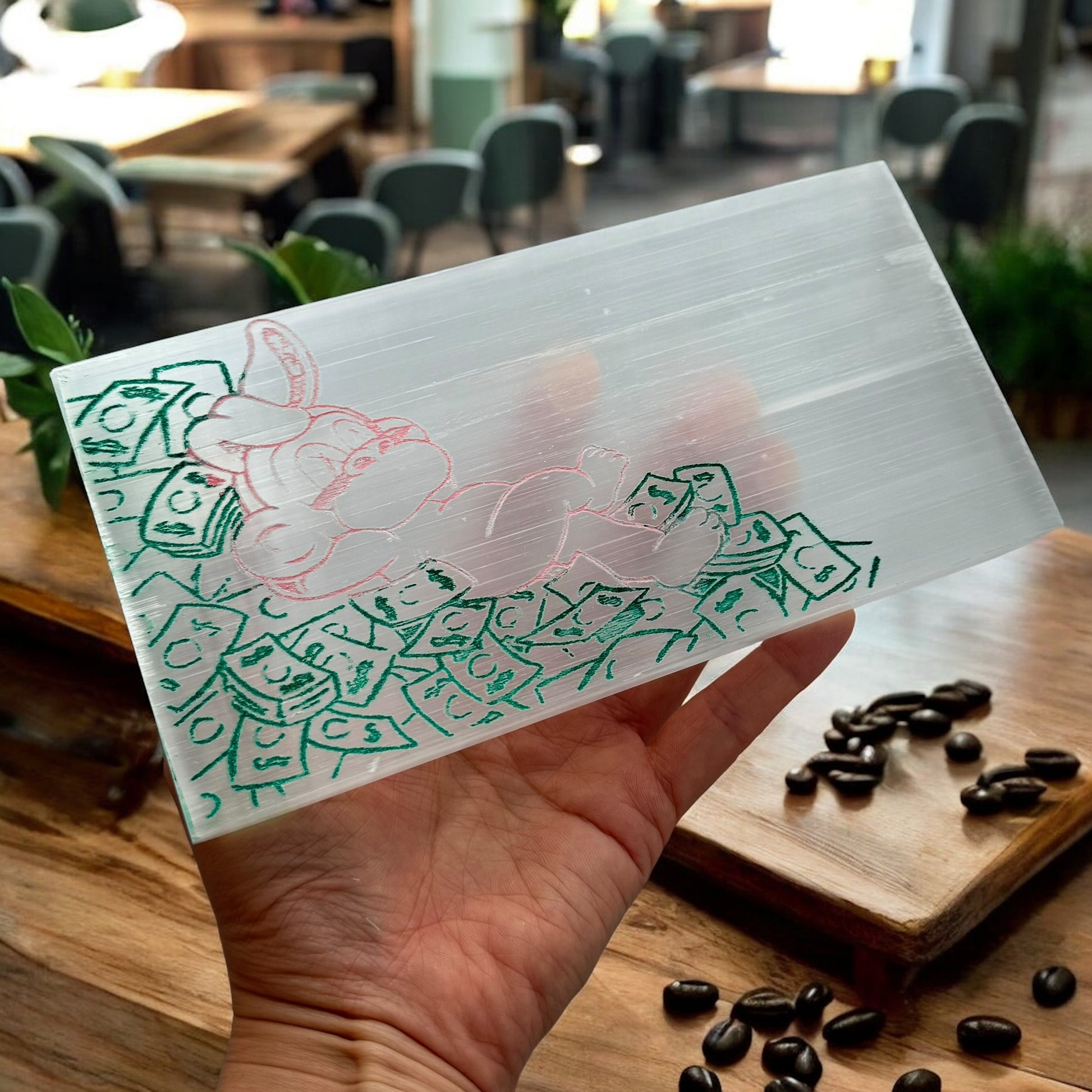 Abundantia Ape 雕刻矩形透石膏水晶板(大號)