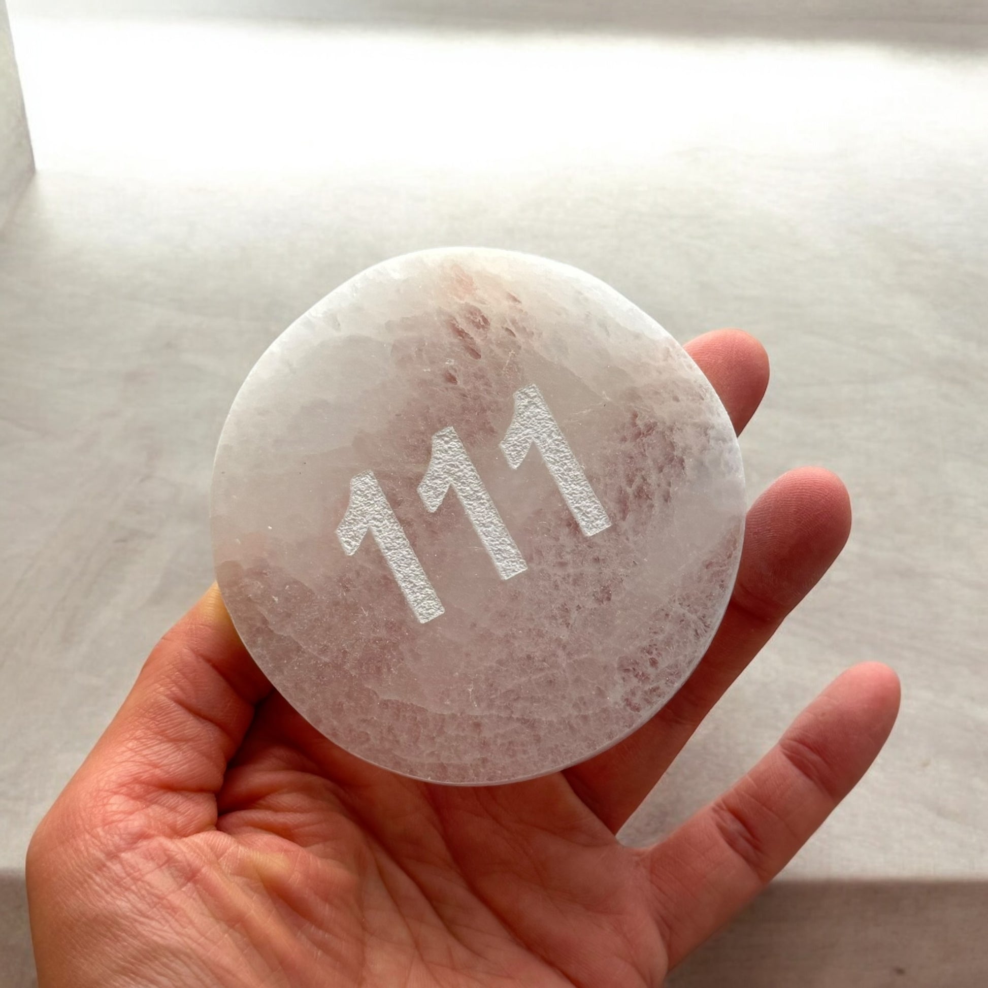天使數字“111”圓形透石膏水晶板(小/中)