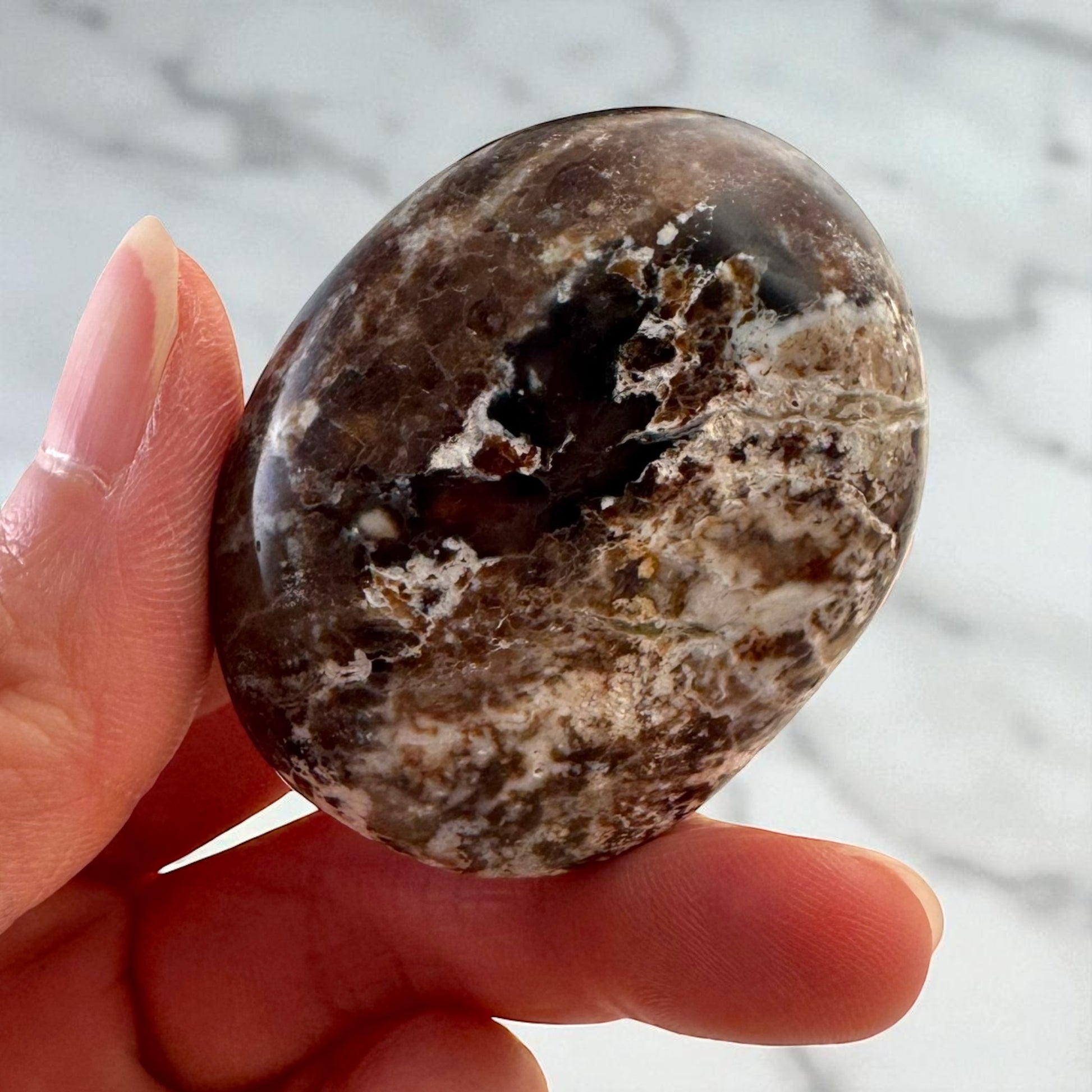 咖啡蛋白石溫暖滋養,散發溫柔的根基與情感支持。它飽滿的泥土色調與根輪和心輪緊密相連,是穩定、情緒療癒和激發行動的強大盟友。咖啡蛋白石尤其因其以平靜明晰的心態引導轉變,同時為情感更新和自我關懷留出空間而備受青睞。