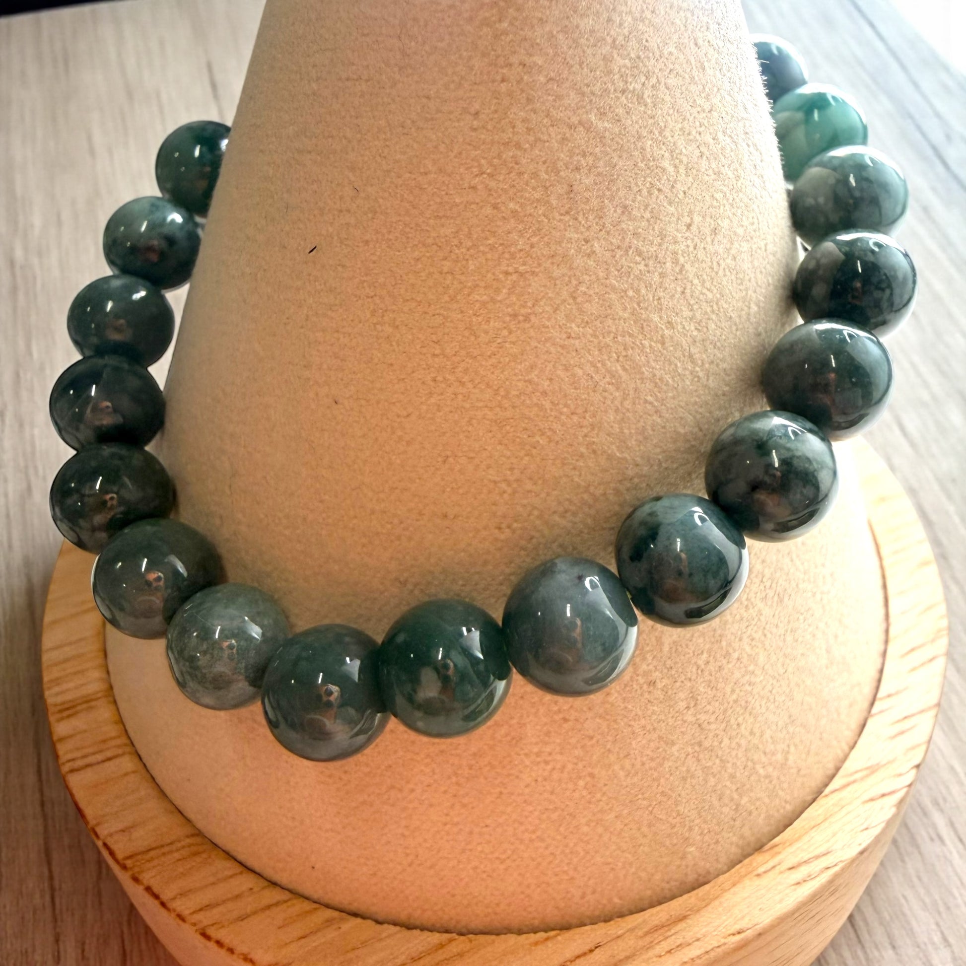8毫米深綠色危地馬拉玉珠手鍊