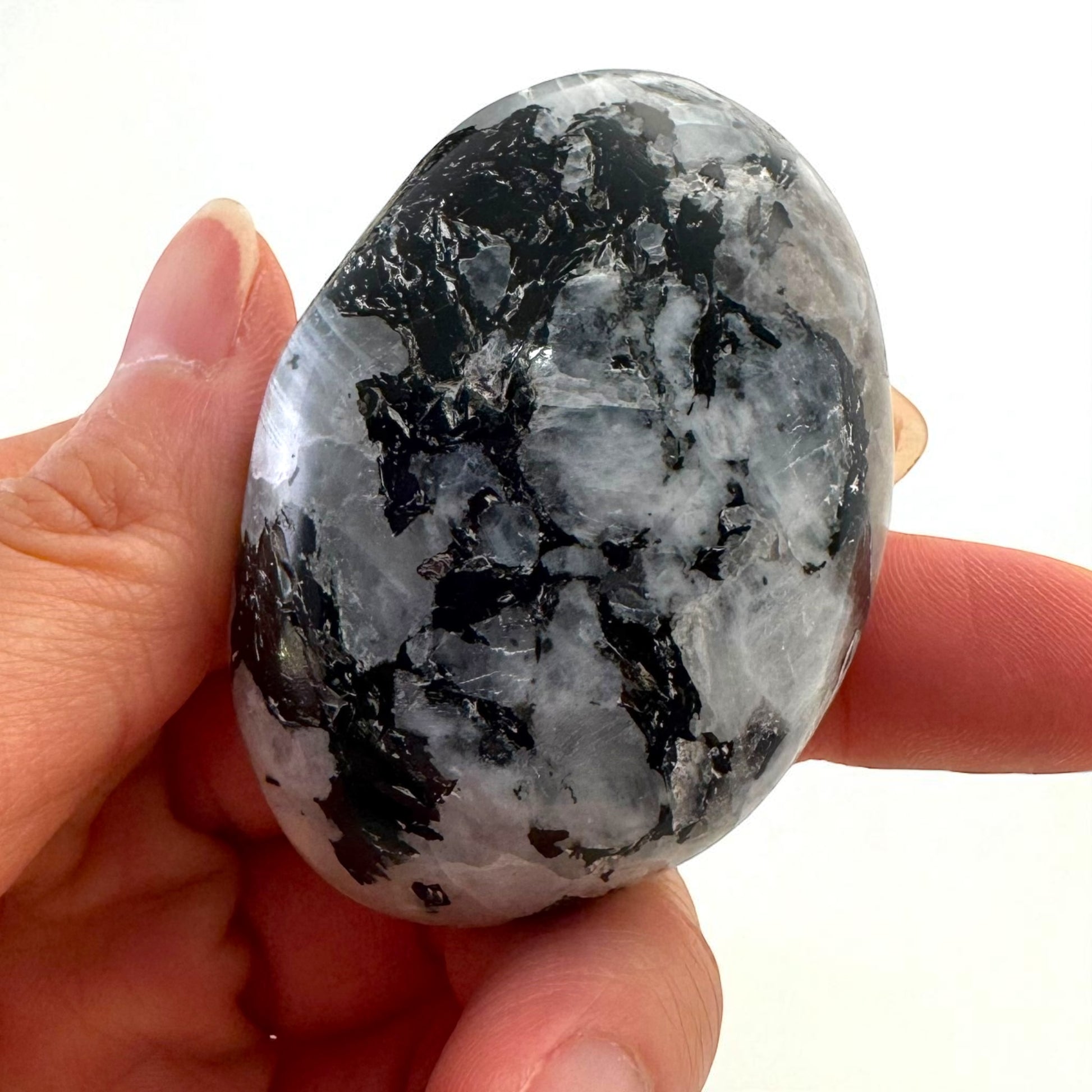 彩虹月光石是一種神秘而高振動的水晶,因其與月亮能量、女性智慧和內在光輝的聯繫而聞名。它閃耀著藍色和彩虹色的光芒,能夠喚醒直覺,滋養情緒平衡,並促進精神成長。它是夢境探索、蛻變和神聖指引的珍貴寶石。