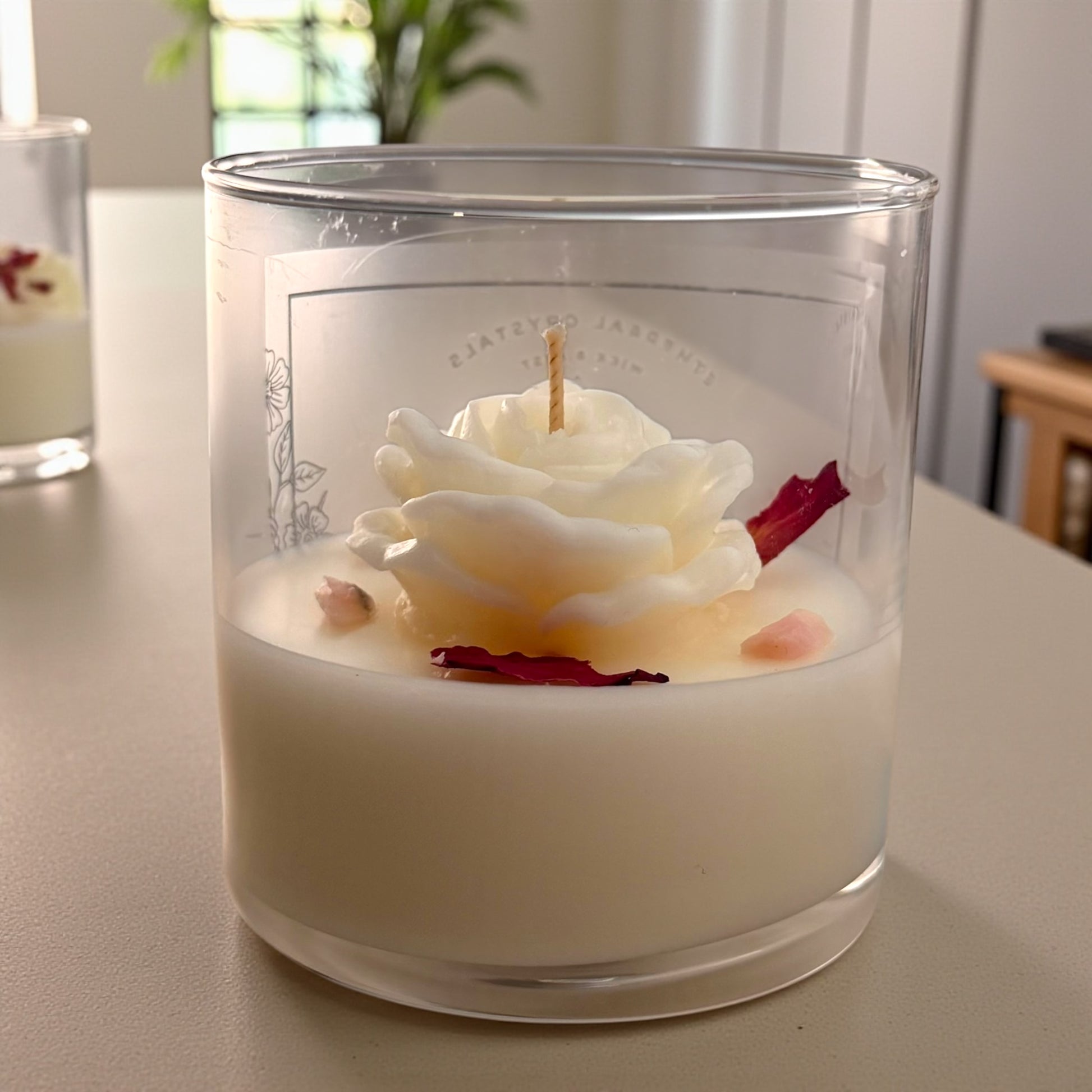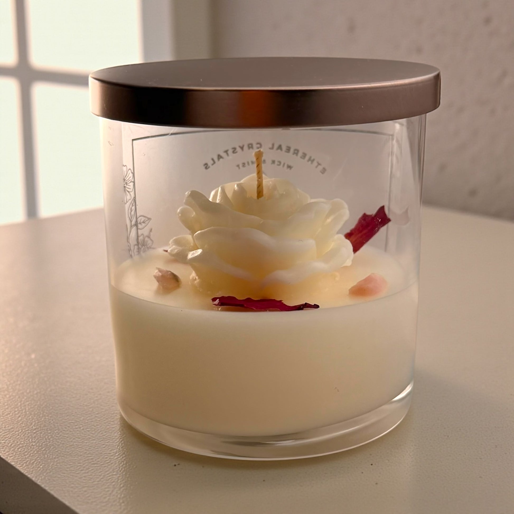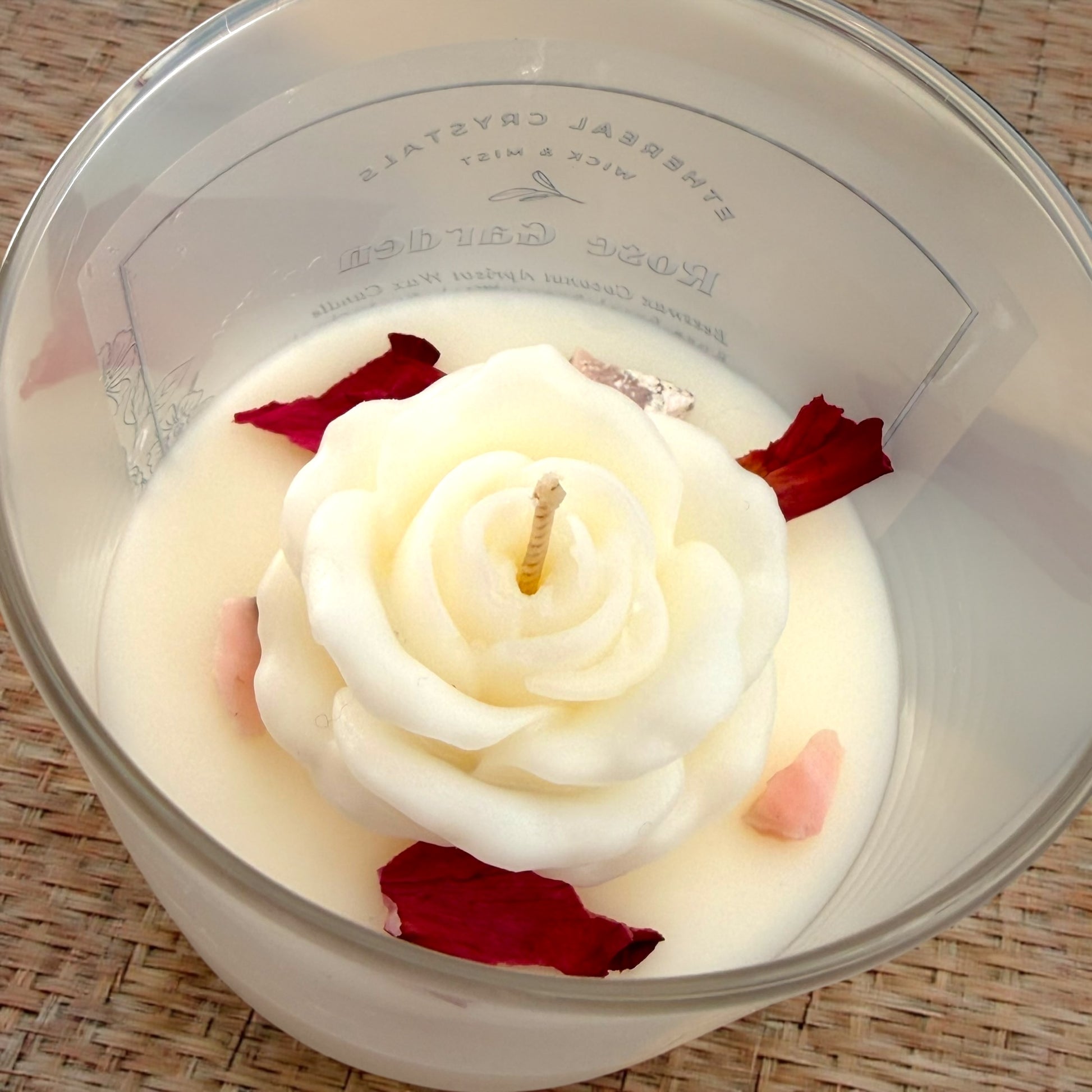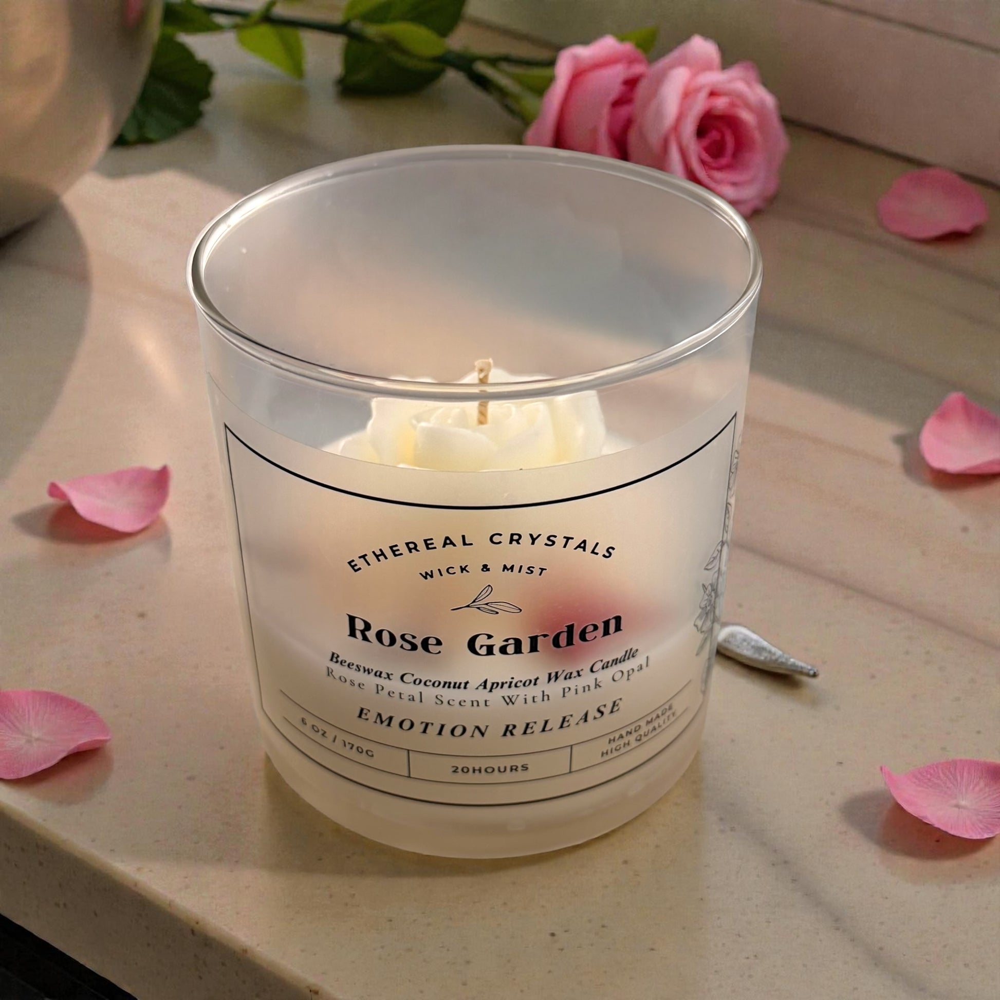 「玫瑰花園」是一款注入了粉紅色蛋白石水晶能量的蠟燭,其能量能夠開啟心扉,並點綴著嬌嫩的紅色玫瑰花瓣。這款蠟燭旨在淨化空間,提升能量,並將愛、光明與寧靜帶入您的生活。讓柔和的火焰引領您走向平和、正面和寧靜。